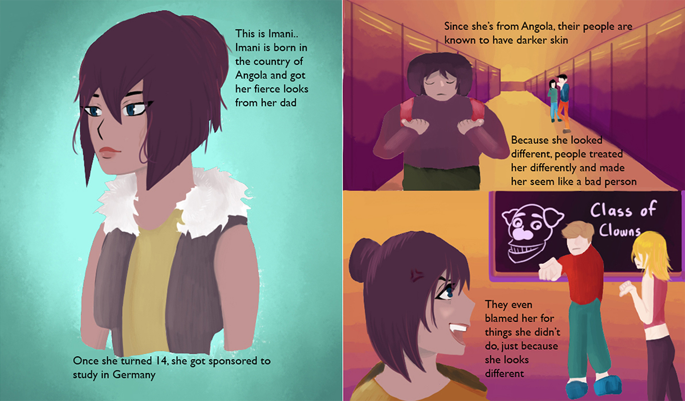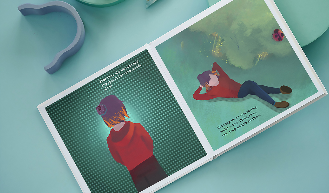 This story book is about how we shouldn't treat people differently just because of their looks. To make the reading experience more enjoyable, appropriate use of colours help to enhance the visuals and harmonise the colours together to create a beautiful and meaningful story.